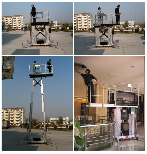單柱鋁合金升降機(jī):該系列產(chǎn)品為室內(nèi)型,廣泛適用于星級(jí)酒店,大型超市等各行業(yè)大廳、廠房內(nèi)的高空作業(yè), 具有升降平衡,操作方便,能進(jìn)入一般門廳,可隨意進(jìn)出電梯且耗電少、工作時(shí)不傷 地面,可用于貼墻工作及探出作業(yè),工作無死角。