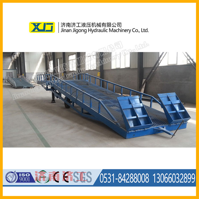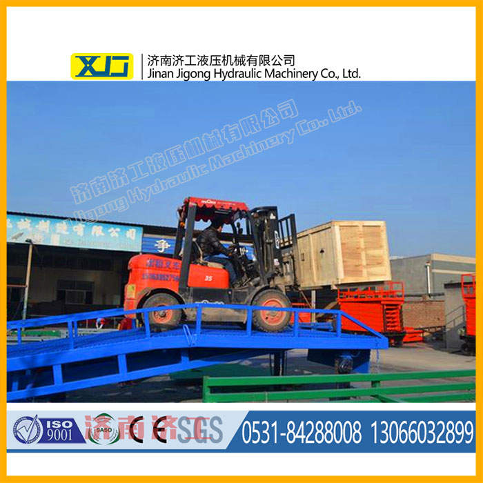 1. 用于貨物裝卸位置不固定場合的用貨物裝卸輔助設備,是實現貨物快速裝卸的專用物流機械,通過它使叉車等搬運車直接進入貨車、列車車廂裝卸貨物,在提高工效的同時又能充分保障作業(yè)安全。 2. 移動式登車橋的頭部設計有兩個互成90°的登車跳板,這種設計可以使用戶能夠合理地利用場地作業(yè),減少作業(yè)場地,具有很好的場地適應性。 3. 采用前腿支撐方式,穩(wěn)定性好; 4. 高度調節(jié)范圍大,適合各種工況; 5. 坡度低,配有安全鏈條和標示,安全性好; 6. 臺面均設計為網格狀鋼板,這種結構能證具有很好的強度,又具有防滑功能,還能方便地清掃工作臺面,使它能經常地保持清潔、美觀。 7. 無須外接電源,通過手搖泵作動力能輕松地在其整個調整范圍內按50mm的倍數進行高度的調整??梢猿浞诌m應各種不同高度的貨車。 8. 需要移動時,可利用叉車作牽引,配用隨機配備的快夾即可方便地進行移動,從而實現貨物的快速裝卸。 | |